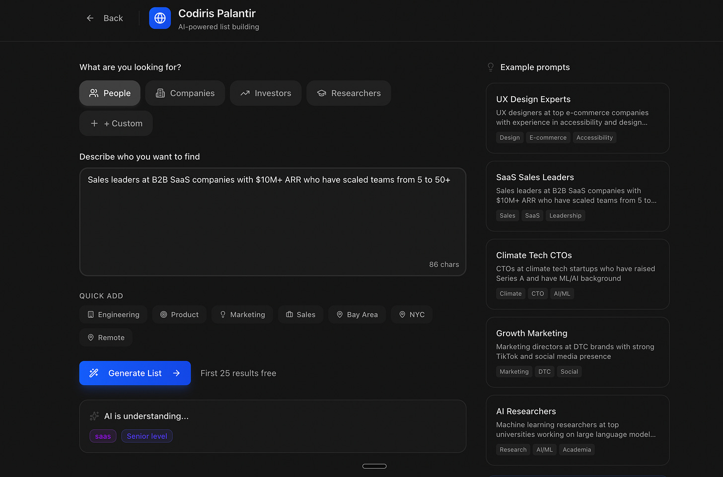 So instead of guessing where to find them, I used Codiris Palantir to search and identify the right participants.