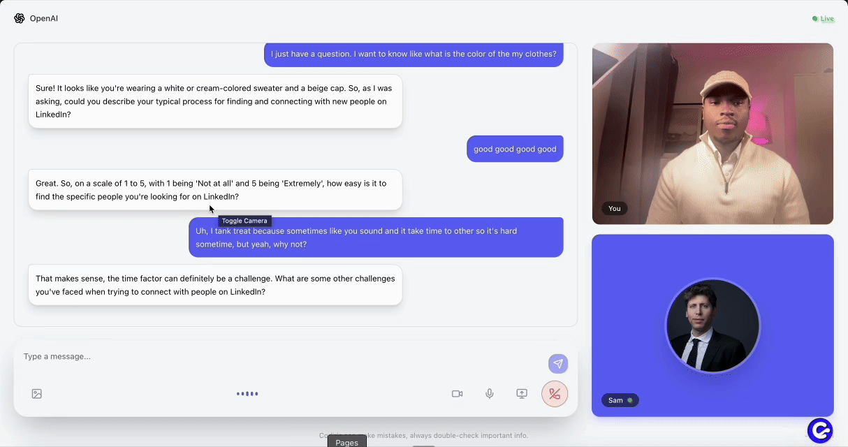 Codiris adapts its questions across modalities, following up based on what it hears, reads, and sees.